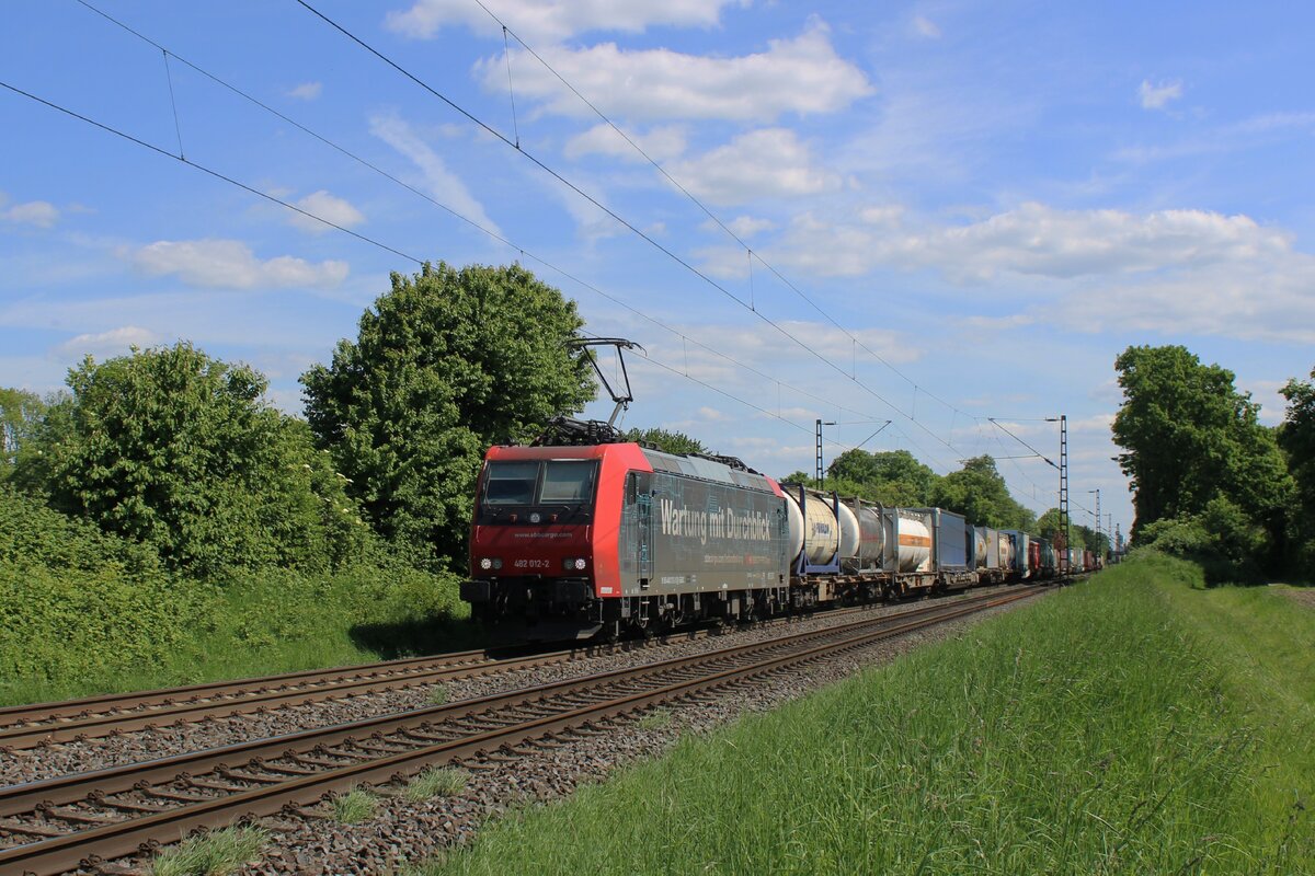 Die an die SBB Cargo International AG vermietete SBB Cargo Re 482 0017-1 (91 85 4482 017-1 CH-SBBC) fährt am 16 Juli 2024 mit einem Kesselwagenzug durch Kirchen/Sieg in Richtung Köln