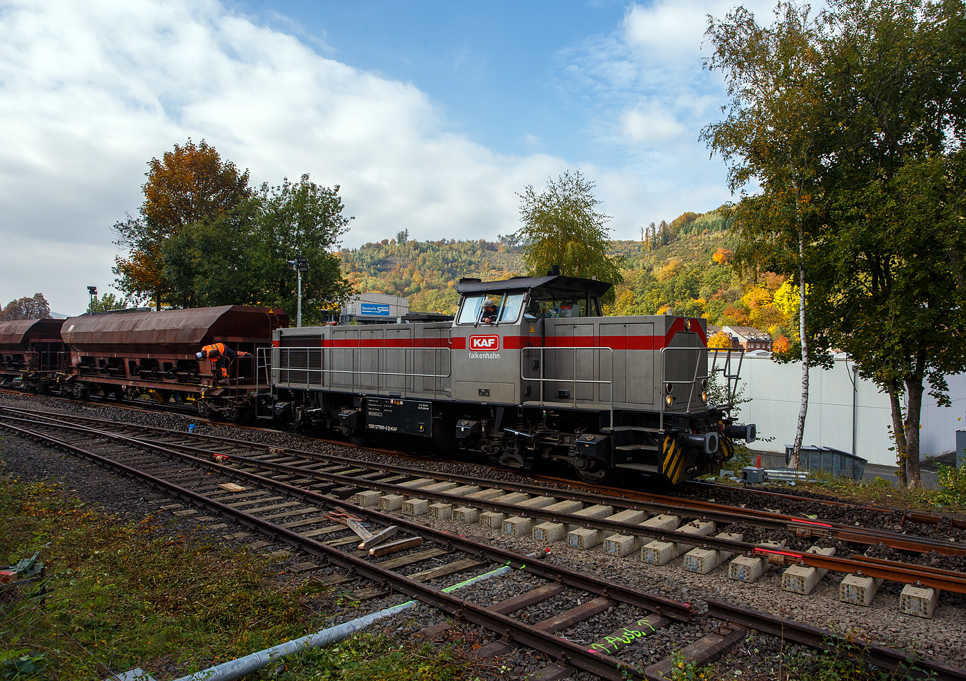 Baustelle Bahnhof Herdorf am 12 Oktober 2025, nun werden die Weichen 25 und 26 eingeschottert.