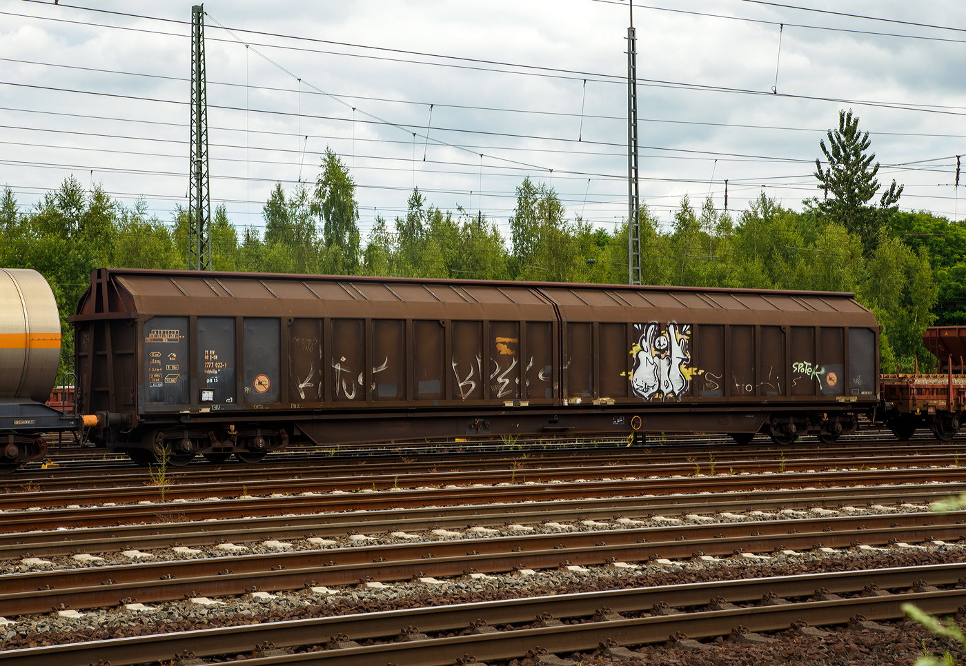 Privater gedeckter Güterwagen mit Schiebewänden der Gattung Hills, 10 80 2102 000-4, WEBA 02 (10 80 DB 210 2 000-4), der Westerwaldbahn (WEBA) abgestellt am 07 Juli 2024 auf dem Betriebshof der WEBA) auf der Bindweide bei Steinebach/Sieg abgestellt.