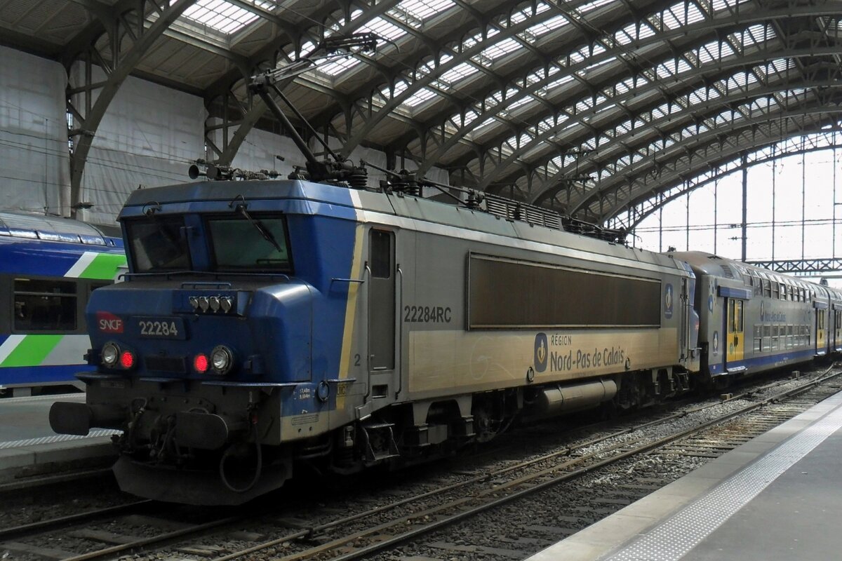 Die SNCF "nez cassé en livrée grise" (zu deutsch "gebrochene Nase in grauer Farbgebung") BB 22233 (91 87 0022 233- 7 F-SNCF) steht am 25.03.2015 mit einem Corail Téoz (Intercity) im Bahnhof Marseille St-Charles zur abfahrt bereit. An Hand der ersten Ziffer vor der Loknummer (5), kann man die die Zugehörigkeit zum Geschäftsbereich der SNCF erkennen, die "5" steht für TER (Regionalverkehr).