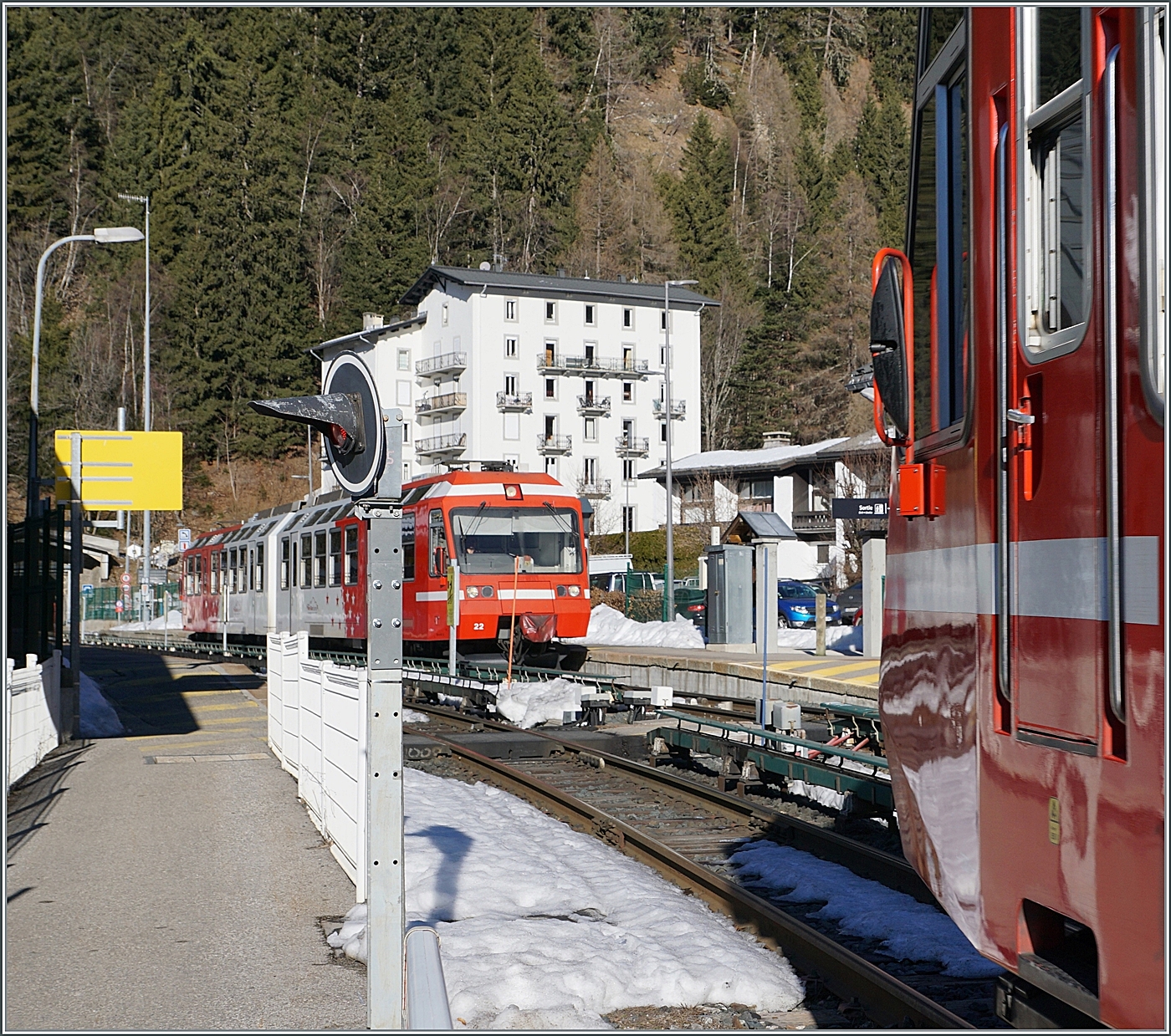 Der TMR BDeh 4/8 21 ist als R18946 von (Martigny) - Vernayaz MC nach Vallorcine unterwegs und konnte bereits nach dem Verlassen der Schweiz im schattigen Tal kurz vor Vallorcine fotografiert werden.