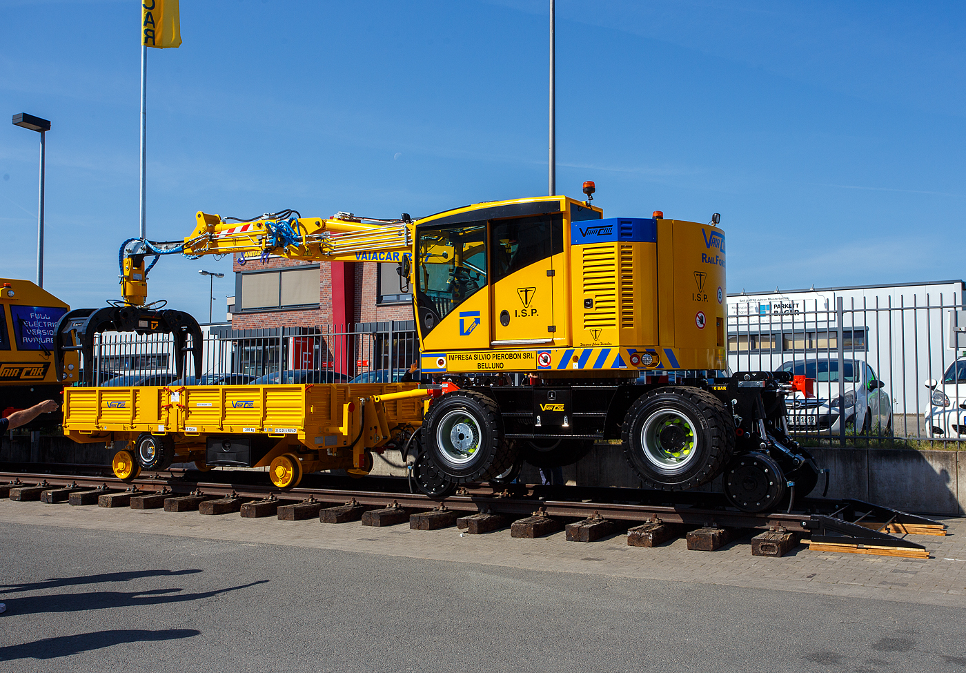 Die italienische VAIA CAR S.p.A. mit Sitz in Calvisano bei Brescia präsentierte auf der 29. Internationale Ausstellung Fahrwegtechnik 2025 (iaf) in Münster (hier am 20 Mai 2025) das Zweiwege-Schienenschweiß-Fahrzeug vom Typ Spark-Rail (als voll elektrischer Version), mit Schweißkopf vom Typ KUBE K355 (von VAIA CAR entworfen und patentiert).