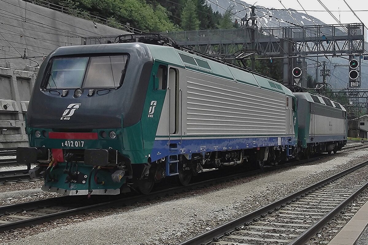 In Doppeltraktion fahren zwei Brennerloks (ex Trenitalia E.412) am 26.03.2022 als Lokzug vom Brenner hinab kommend durch den Bahnhof Gossensaß/Colle Isarco in Richtung Bozen. Nochmal einen lieben Gruß an den netten Lokführer zurück. Vorne die E412 005 (91 83 2412 005-7 I-MIR) und dahinter die E412 018 (91 83 2412 018-4 I-MIR), beide gehören heute zur Mercitalia Rail Srl., die aber auch eine 100%tige Tochter der Ferrovie dello Stato Italiane (FS, deutsch Italienische Staatseisenbahnen) ist. Sie betreibt heute die Güterverkehrssparte.