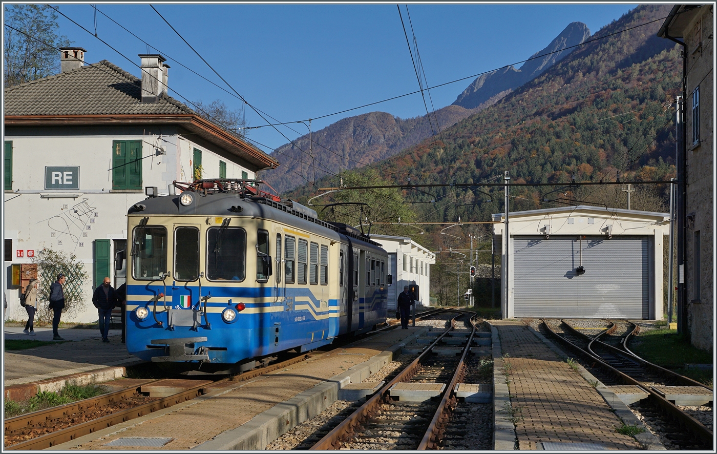 Der ABe 8/8 23 "OSSOLA" der SSIF (Società subalpina di imprese ferroviarie), steht am 15.09.2017, als Regionalzug nach Re, im Bahnhof Domodossola (Stazione SSIF di Domodossola) zur Abfahrt bereit.
