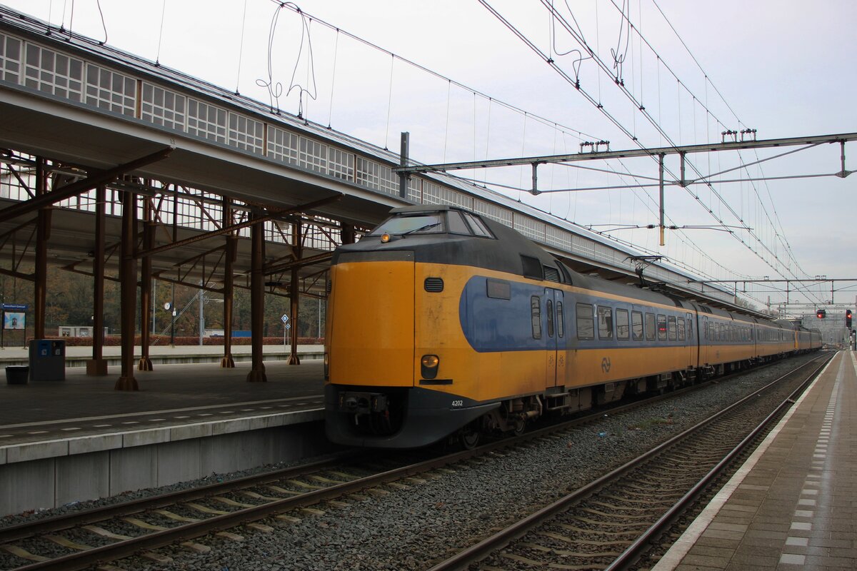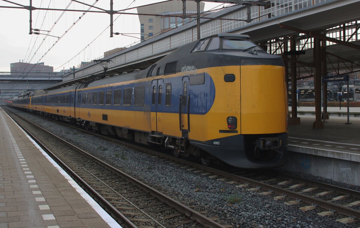 . Auf der Fahrt mit dem Museumsstoomtram von Hoorn nach Medenblick kommt uns kurz hinter Hoorn, vor der Abzweigung nach Medemblick der Koploper aus Enkhuizen entgegen. 01.10.2016