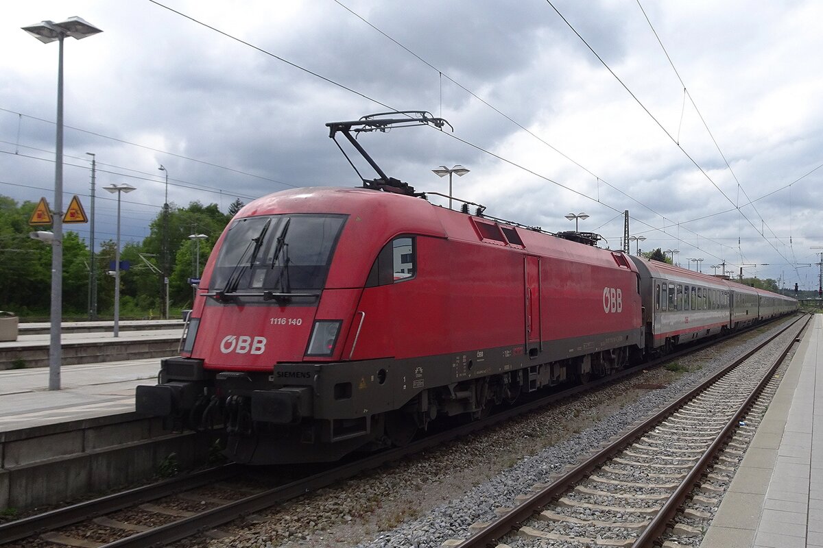 Am 18 Mai 2023 schiebt ÖBB 1116 140 ein IC aus Rosenheim nach München Hbf.