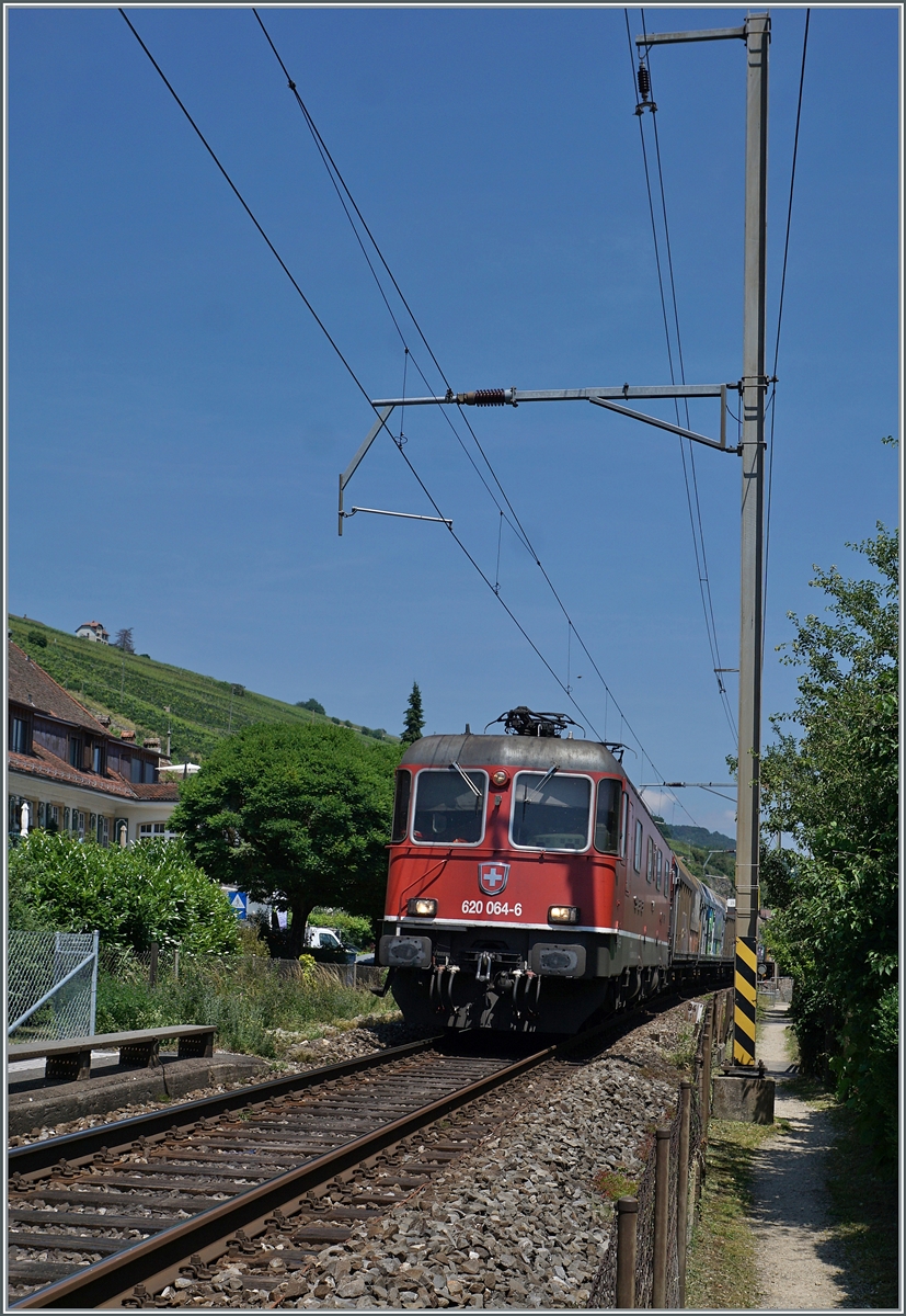 Die SBB Cargo Re 6/6 11646 (Re 620 064-6) "Bussigny" ist bei Ligerz mit einem Güterzug in Richtung Neuchâtel unterwegs.