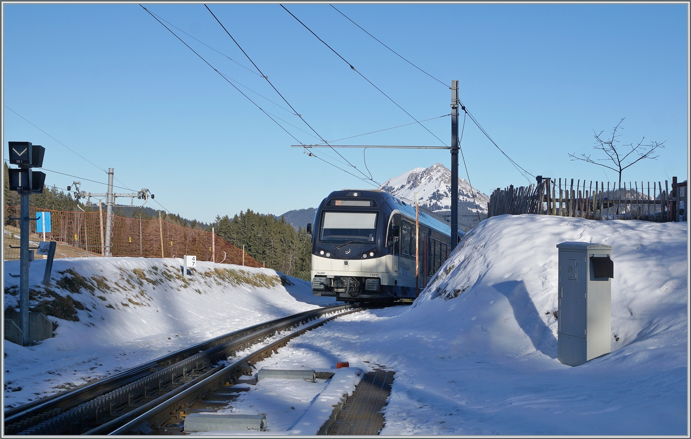 In Blonay wartet die abgestellte MOB GDe 4/4 6006 und der CEV MVR ABeh 2/6 7508 auf neue Aufgaben.