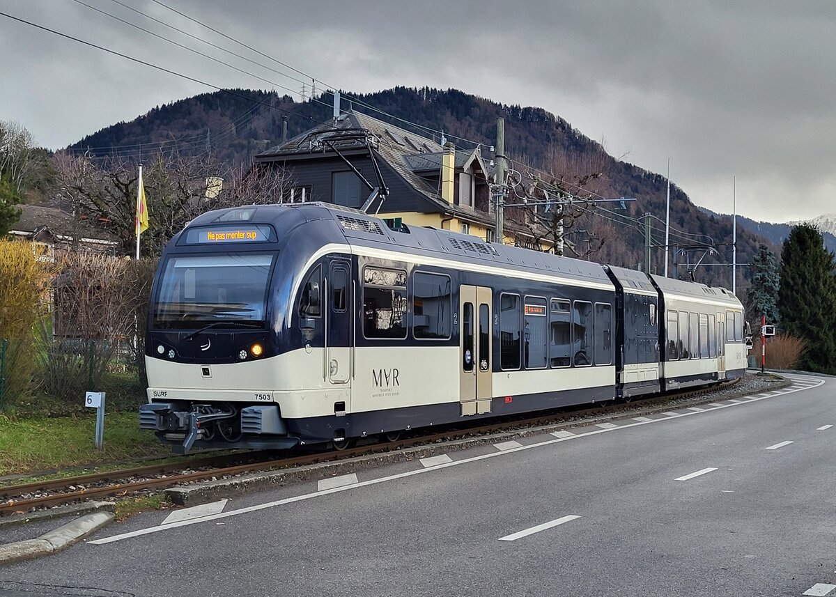 Der CEV MVR ABeh 2/6 7507 verlässt als Regionalzug Planchamp in Richtung Montreux.