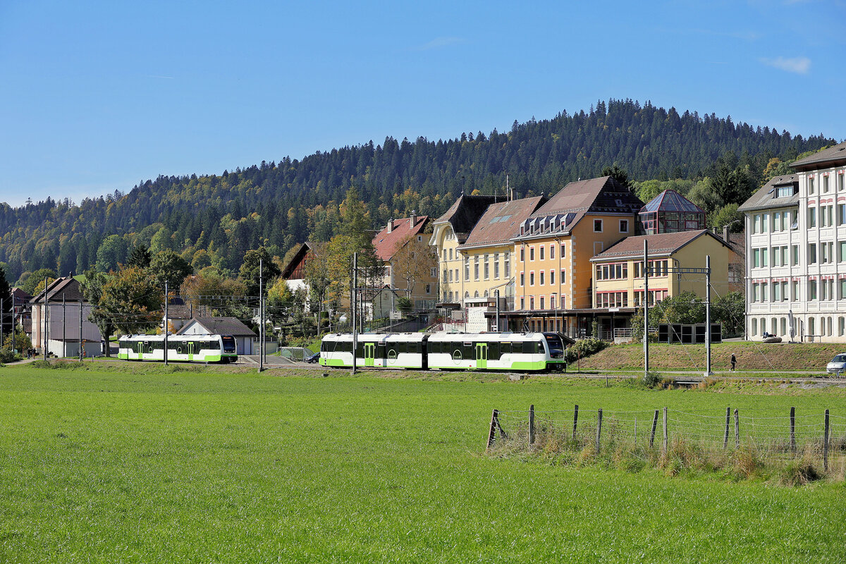 Der TPC Beh 2/6 wartet auf die Abfahrt nach Champéry, der neue ABe 4/8 471 wird nach Les Diablerets fahren und im Hintergrund steht ein A-L Regionalzug R70 nach Leysin.