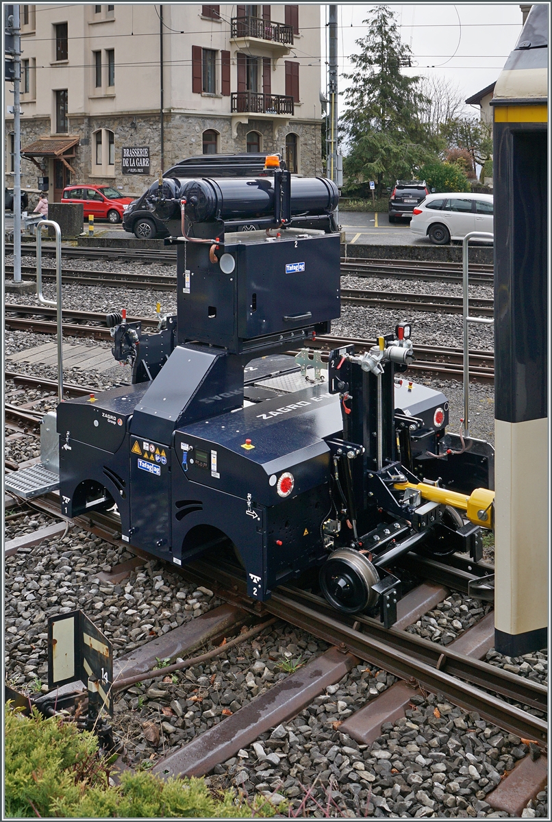Im Hintergrund ist der Les Pléiades zu erkennen, welche von den beidne Loks nur die rote HGem 2/2 2501 dank ihrem Zahnradantrieb erklimmen kann.