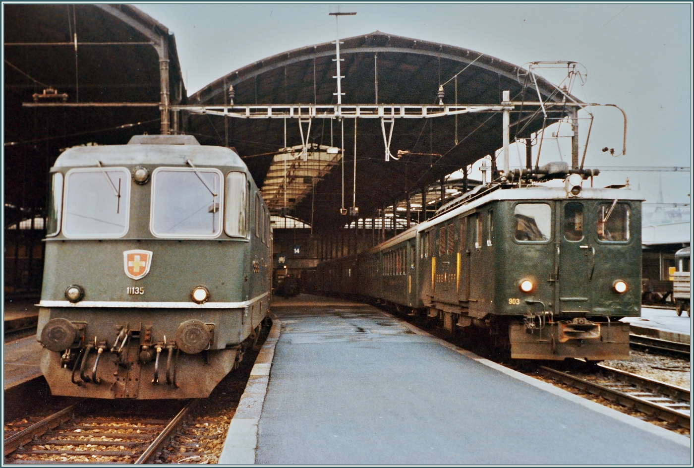 Die BLS Re 4/4 II 501 wartet mit ihrem RE nach Zweisimmen in Interlaken Ost auf die Abfahrt.