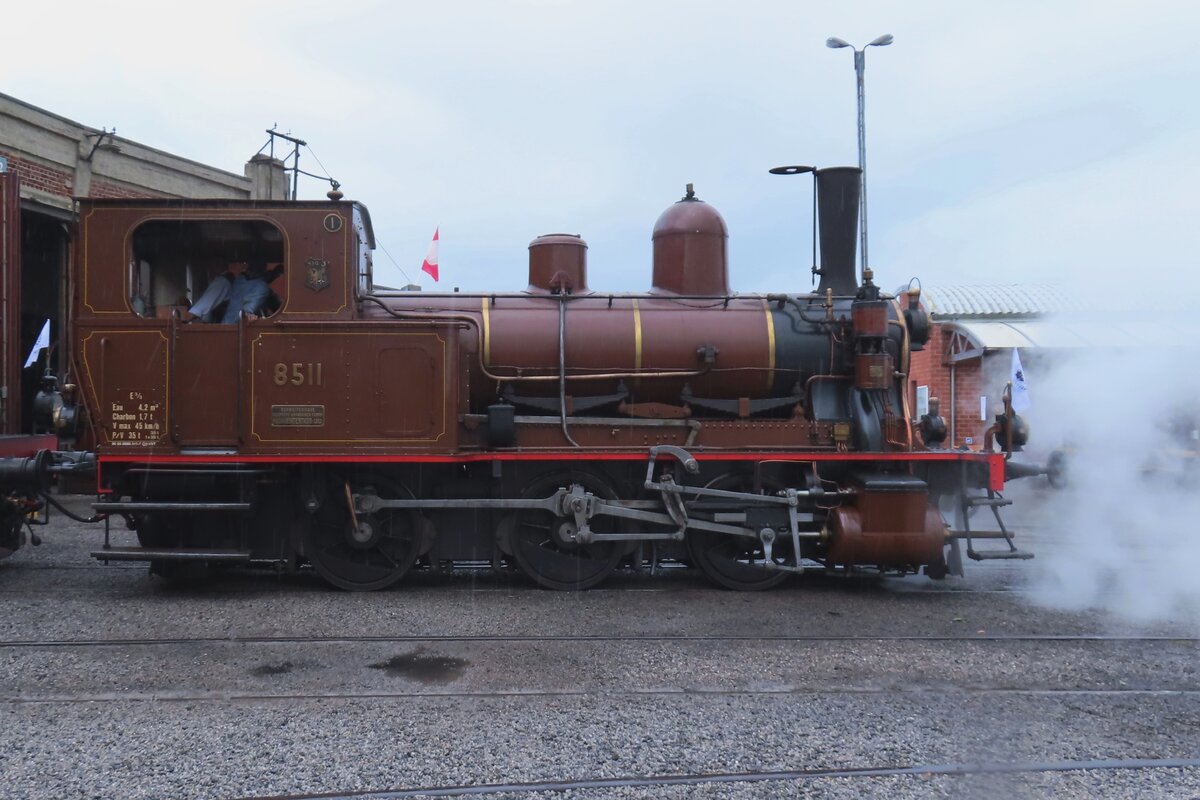 Trotz des bescheidenen Verkehrs auf der ST bilden die wenigen Fahrzeuge eine interessante Spannweite von der Nostalgie zur heutigen Zeit: ST Tm 232 596-7 (98 85 5232 596-7 CH-ST), dreiachsige Plattform Personenwagen und die E 3/3 N° 5 in Sursee.