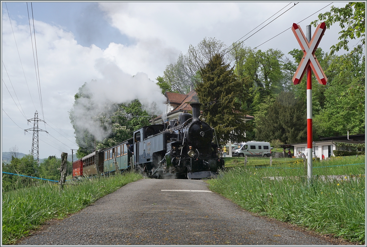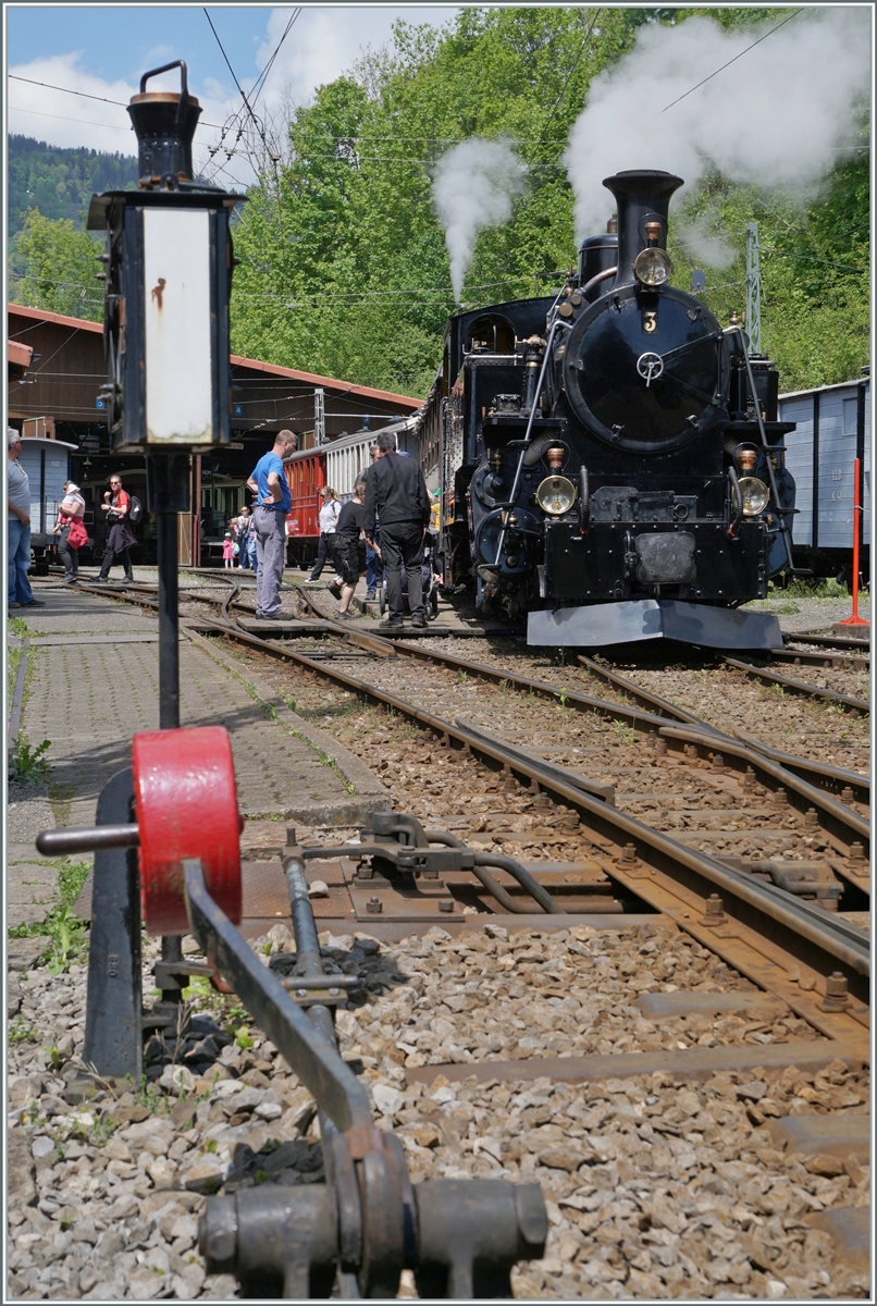 "Le Chablais en fête" bei der Blonay Chamby Bahn. Auch wenn etwas von "Thema" abweichend gab es Dampf: die BFD HG 3/4 N° 3 der Blonay Chamby Bahn erreicht Chamby.