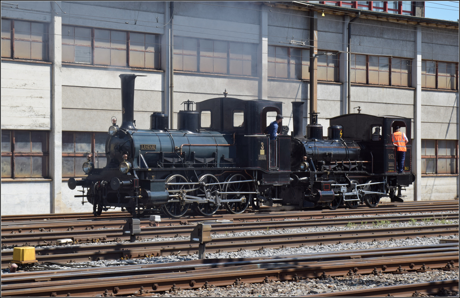 Das Bild zeigt die E 3/3 853 des Vereins Dampf Bahn Bern beim Umfahren in Wasen i.E.