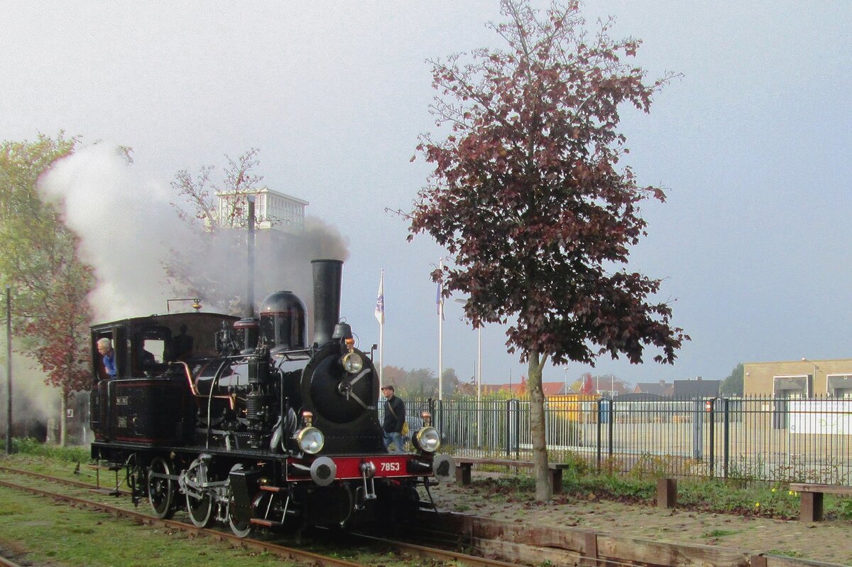 MBS 7853 'NAVIZENCE' treft am 23 Oktober 2016 mit ein Dampfpendelzug aus Boekelo in Haaksbergen ein.