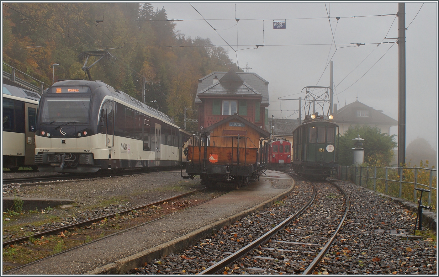"LA DER 2020 du Blonay-Chamby" / Saison Abschluss der Blonay-Chamby Bahn: Mit einem verstärkten Fahrplan und viel Dampf wird vor dem "Winterschlaf" nochmals viel Betrieb gemacht. Im Bild die BOB HGe 3/3 N° 29 welche mit ihrem Zug in Chamby eingetroffen ist, und ihn nun nach Chaulin zurück schiebt. 24. Okt. 2020