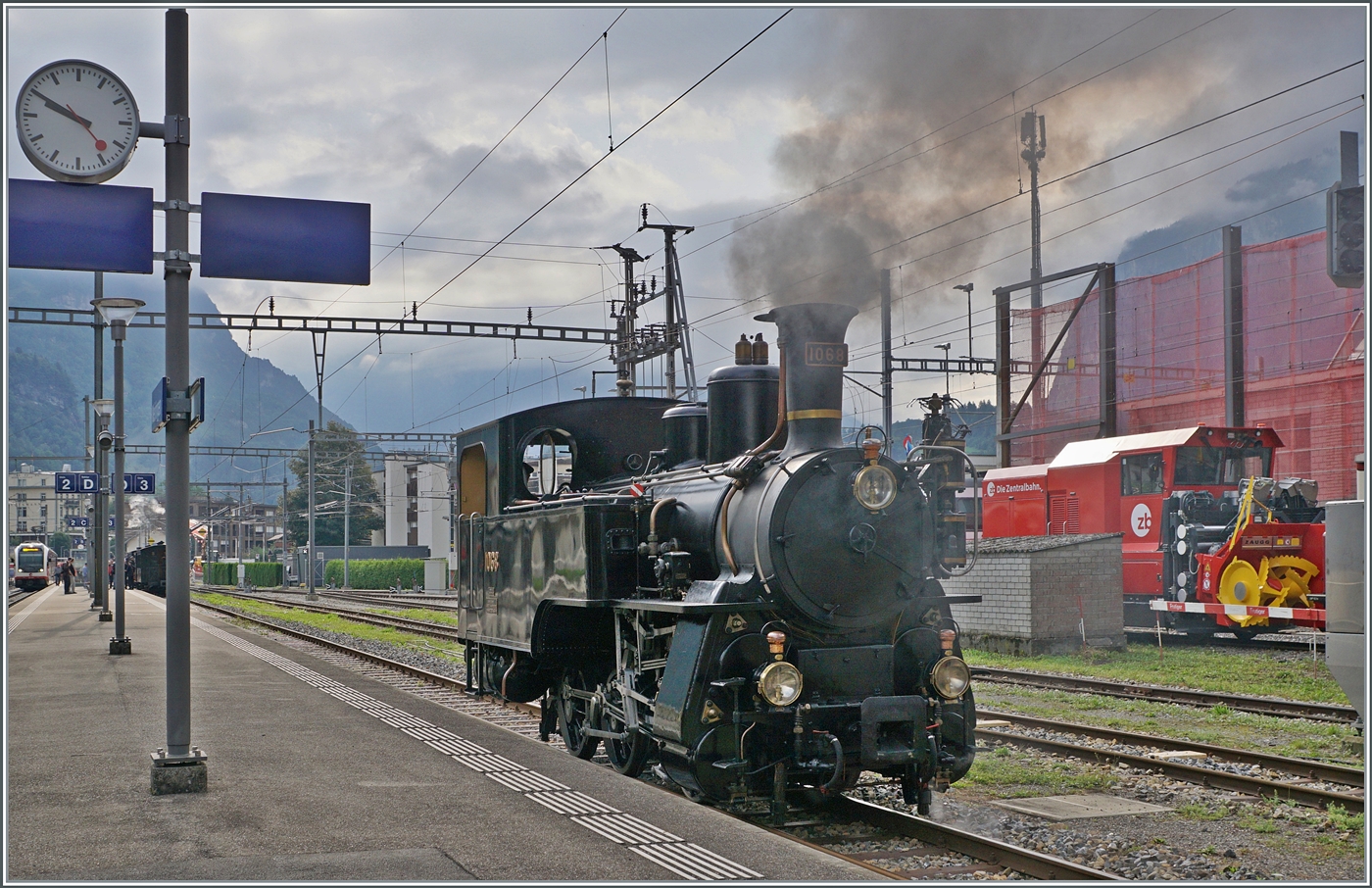 Der 1962 gebaute Brüngibahn ZB Te 171 203-3 "Meiringen" rangiert in Meiringen.