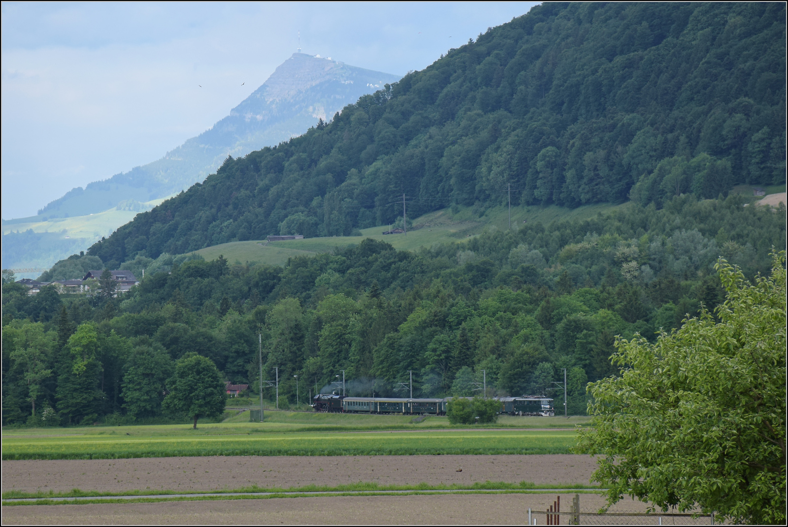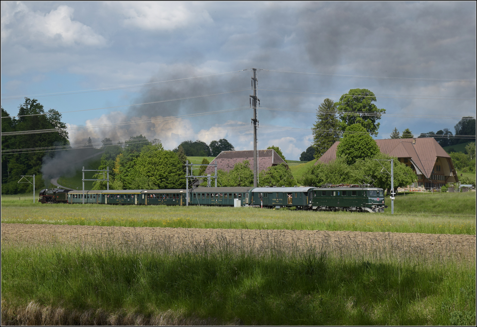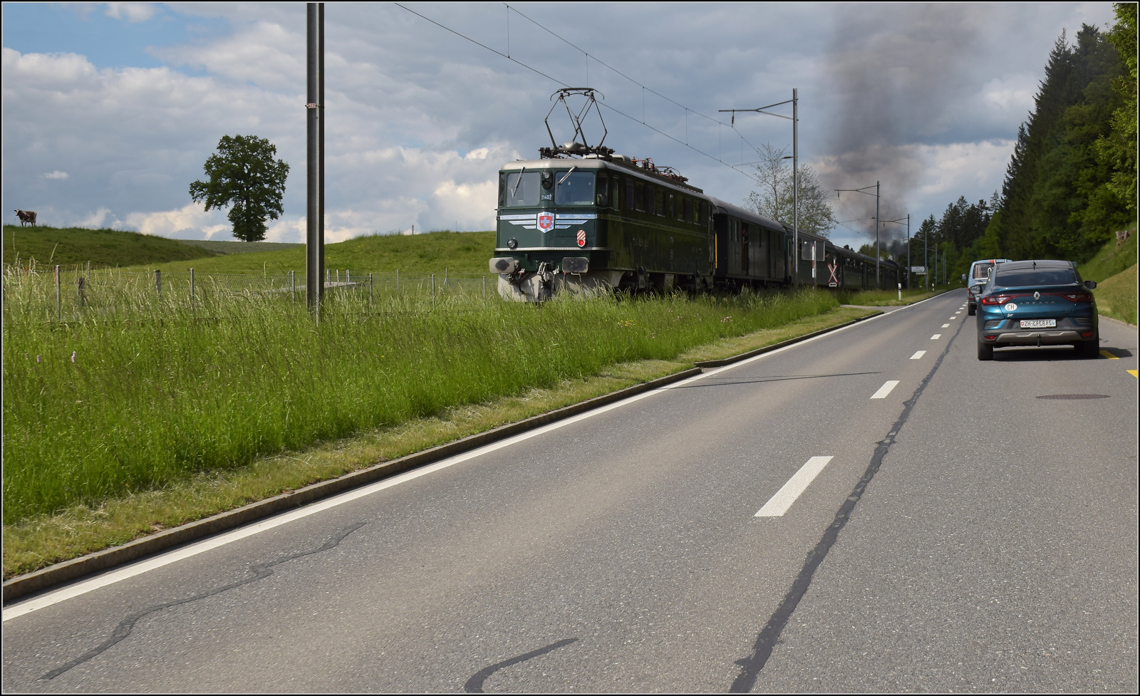 Die Ae 6/6 11422 in Beromünster. Die Ae 6/6 besorgen den Güterzugsdienst auf der Strecke, der dank der Aluminiumwerke in Menziken und dem Stückgutverkehr in Reinach teilweise recht stark sein konnte.