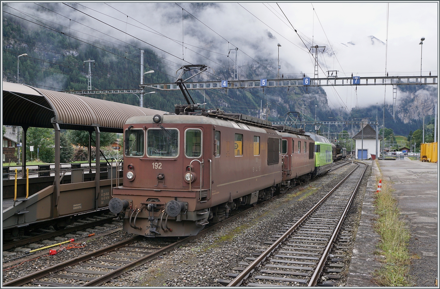 Mit der Auslieferung des letzten "Refit"-Autotunnel-Zugs dürften die Einsätze der BLS Re 4/4 eingültig vorbei sein. In Kandersteg stehen aufgebügelt die beiden BLS Re 4/4 192 und 184 und warten auf einen nächsten Einsatz. Beim Einstellen dieses Bildes (23.12.25) war die BLS Re 184 bereits ausgemustert, die Re 4/4 195 hingegen steht zum Verkauf. 12. Sept. 2024