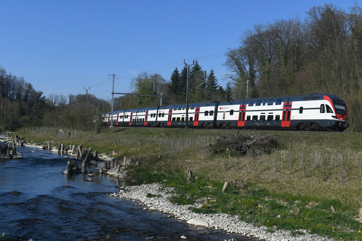 Die SBB Re 4/4 II 11273 (Re 420 273-5) und Re 4/4 II 11269 (Re 420 269-3) in Vielfachsteuerung warten mit ihrem Güterzug in Lausanne die Überholung mit dem RABe 511 119 ab, um dann ihre Fahrt in Richtung Villeneuve fortzusetzten.