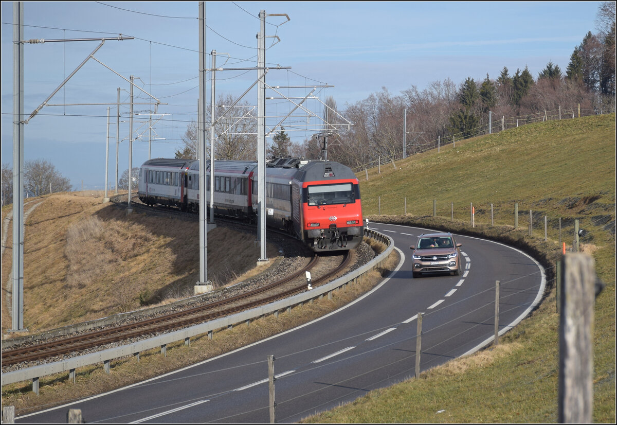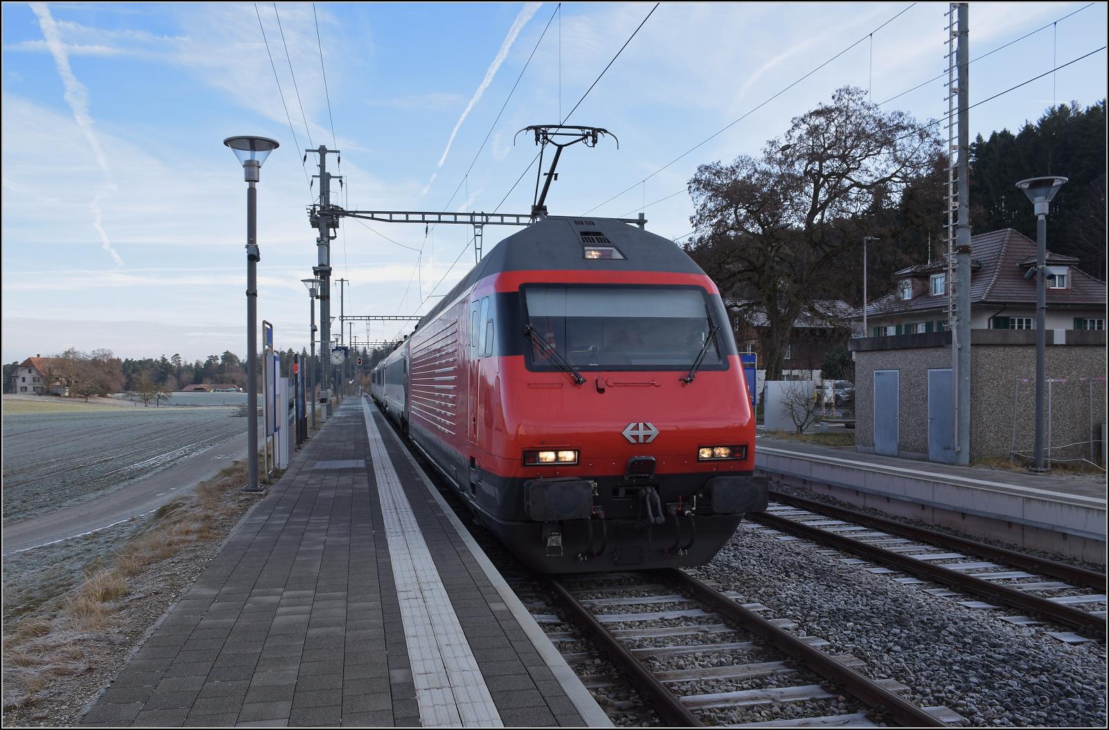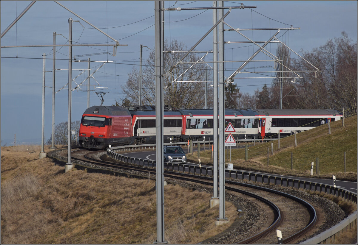 Bereits Geschichte: Ein IC1 von St. Gallen nach Genève Aéroport mit Re 460 und SBB Doppelstockwagen bei der Durchfahrt in Coppet. Zwischenzeitlich werde alte IC + mit "Twindexx" gefahren.