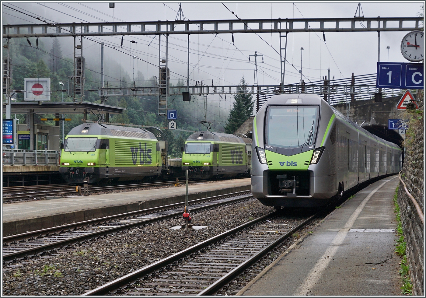 Die MOB Ge 4/4 8001 hat den GoldenPass Express GPX 4065 von Montreux nach Zweisimmen gezogen, wo die nun die BLS Re 465 011 übernimmt.