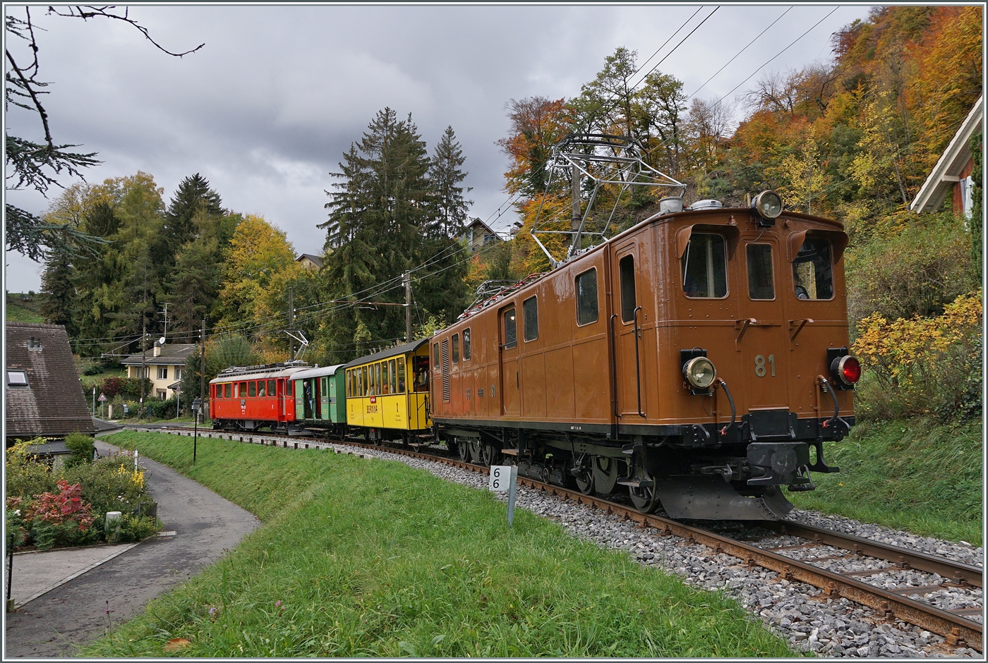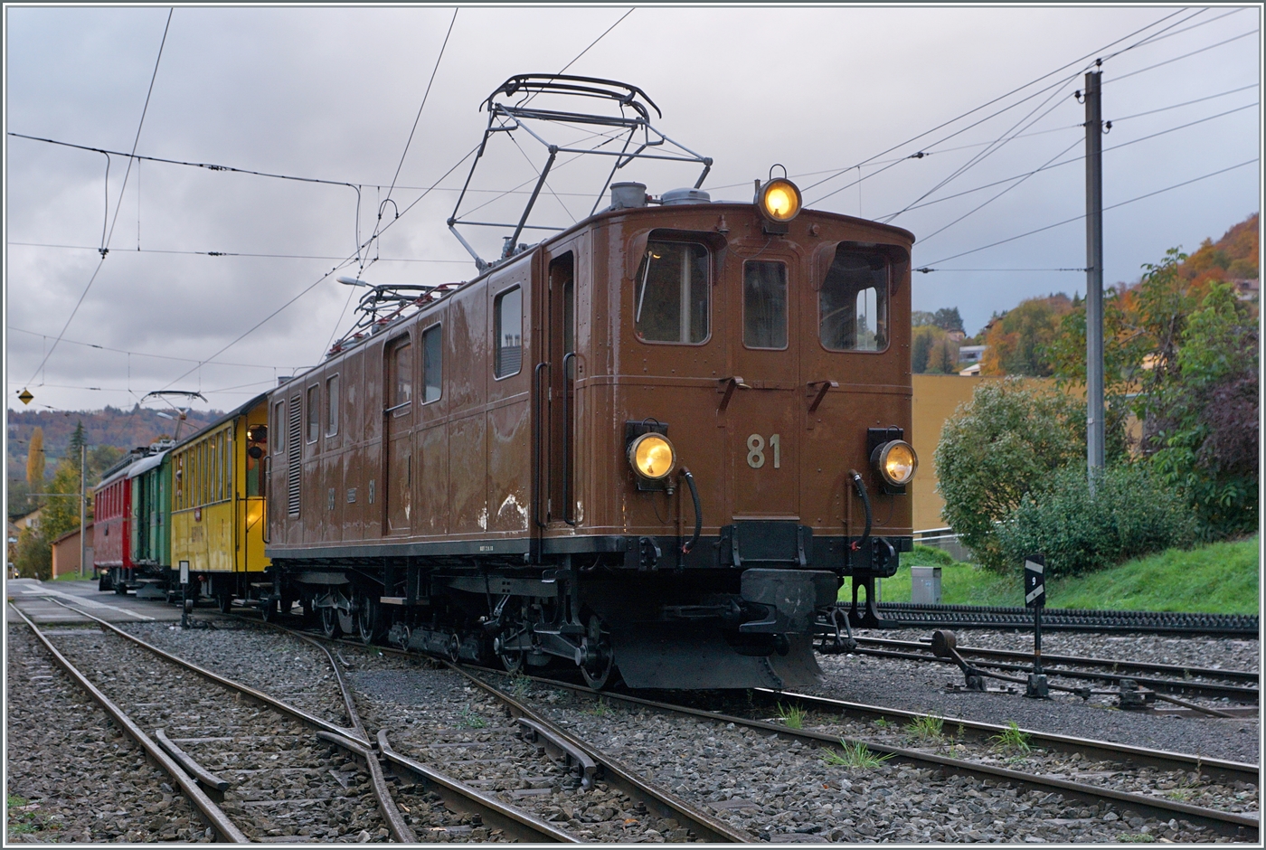 Die Vier kleinen Dampfloks sind in Chaulin eingetroffen. Zu sehen sind: Vorneweg die 1890 gebaute LEB G 3/3 N° 5, dann die JS / BAM G 3/3 909 / 6 von 1901, gefolgt von der BFD HG 3/4 3 von 1913 und am Schluss die G 2x 2/2 105 von 1918 der SEG.