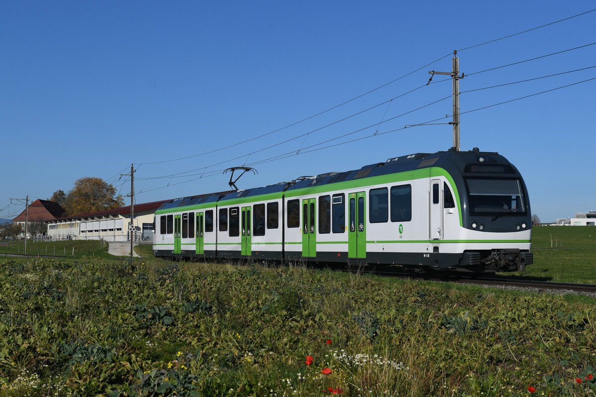Obwohl Steuer- und Triebwagen heist der Zug, eine Einheit bildend, Be 4/8 N° 35 "Romanel". Lausanne-Flon, den 6. Nov. 2013