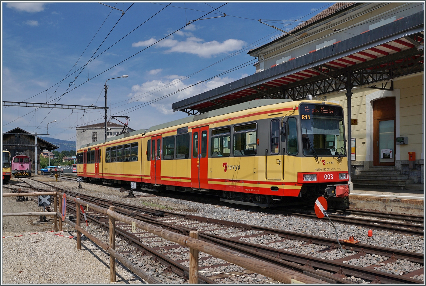 Vor dem etwas drohenden Wolken zeigt sich der O-C Be 2/2 14 in Chavaronay.