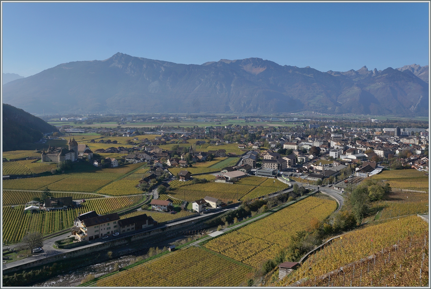 Bis zum Keilbahnhof Aigle-Dépôt hat die Strecke hier durch die Rebberge eine Neigung bis zu 230 ‰ (mit Zahnstange im System Abt). Nach einem Richtungswechsel in Aigle-Dépôt (dann sind die Steuerwagen vorne) verläuft die Strecke dann als Adhäsionsbahn (mit bis zu 38 ‰), teilweise dann als Straßenbahn.