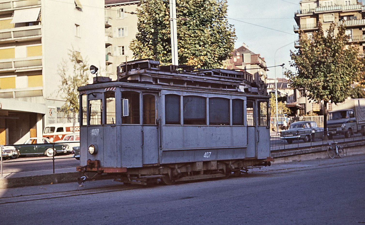 Obwohl fast gleich und gut zusammenpassend, habe die beiden Fahrzeuge einen ganz verschiedenen Lebensgang: Das Triebfahrzeug stammt ehemaligen Tram von Lausanne, während der Beiwagen bei der Vevey-Villeneuve Tramway im Einsatz stand, späte bei der BVB.