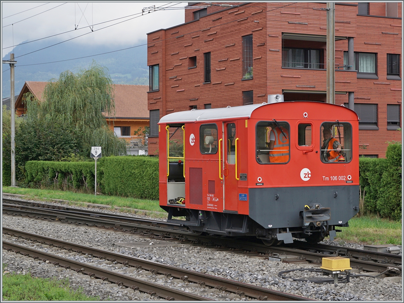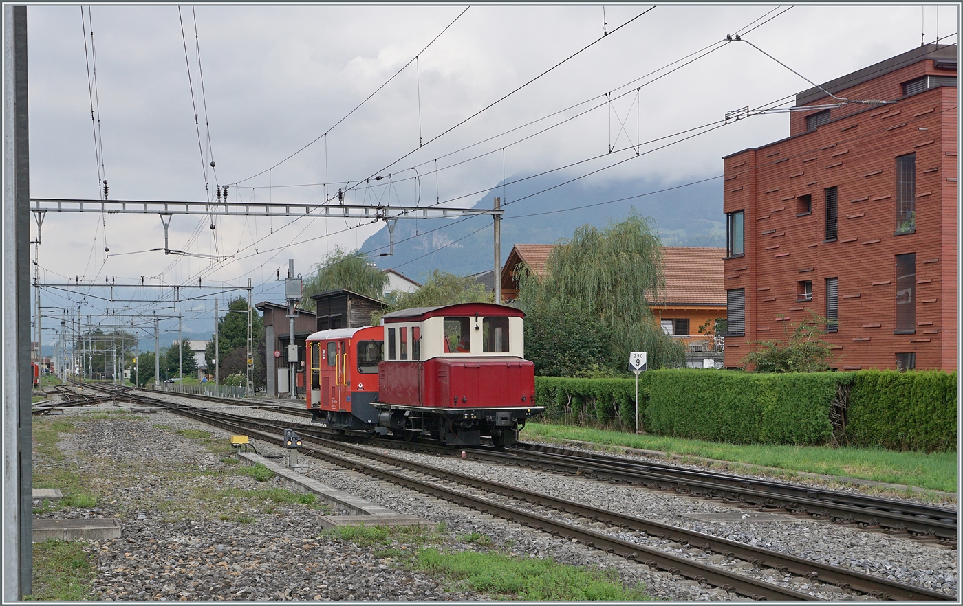Der MOB Tm4 in seiner ursprünglichen Farbgebung bei Fahrleitugnsarbeiten Eingangs Blonay auf der Strecke von Chamby.
