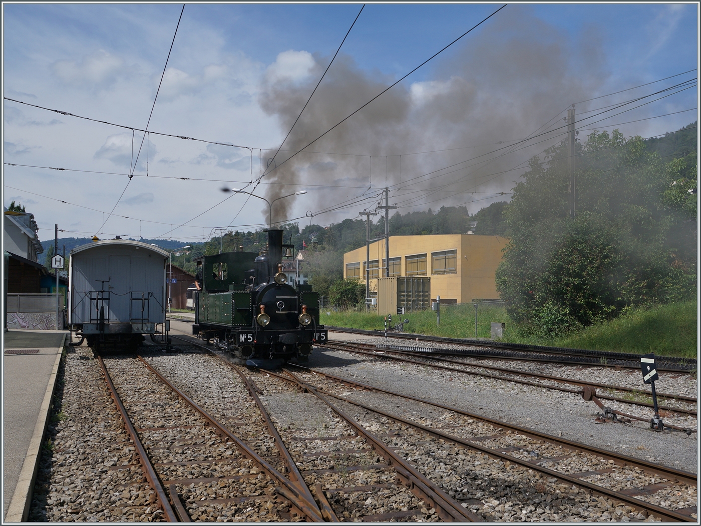 Die Bernina Bahn Ge 4/4 81 hat auf der Fahrt von Blonay nach Chamby Vers-chez Robert hinter sich gelassen.