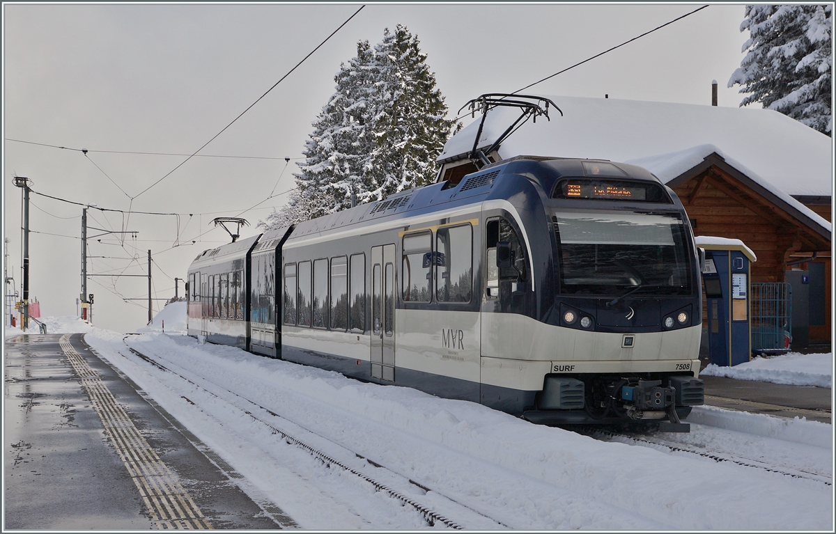 Über die SBB Gleise ein Blick ins TPC Dépôt En Châlet bei Aigle mit den neuen ABe 4/8 und dem Beh 2/6 als Vergleich. Auffallend die "vereinfachte" TPC Lackierung der neuen Züge.