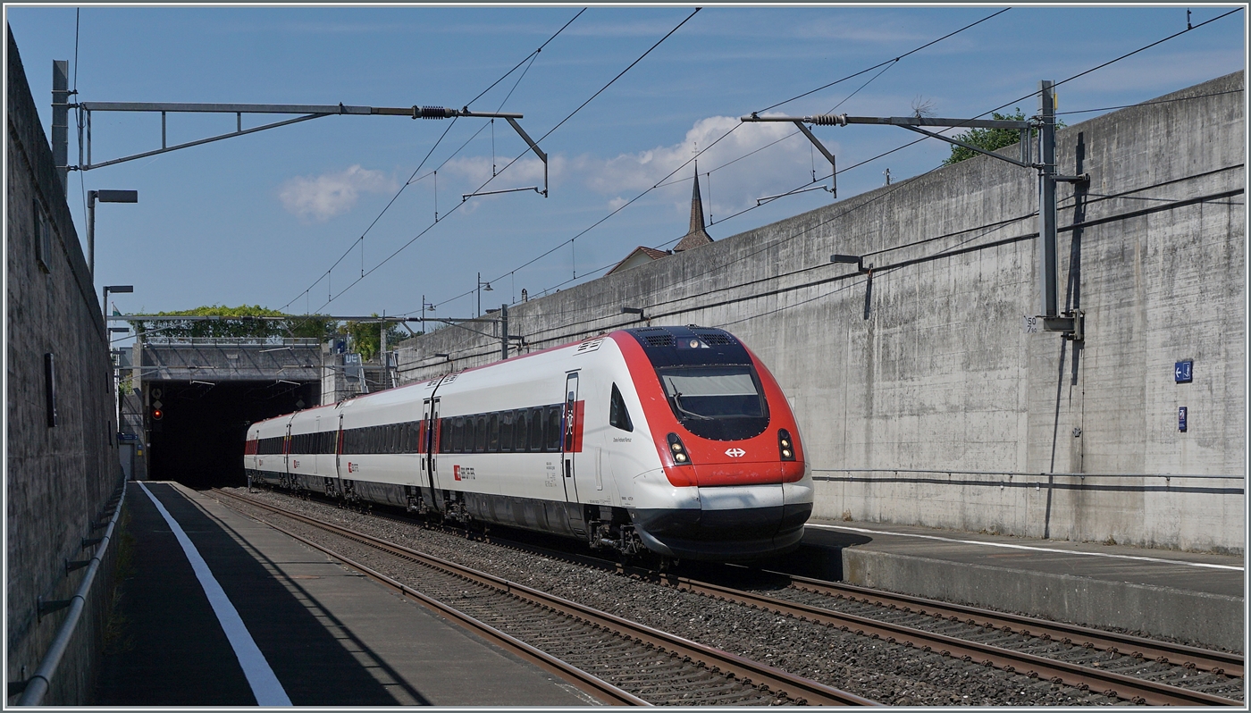 ICN Einsätze auf der Simplon Linie sind sehr selten, am 10. Mai 2023 war es wieder einemal soweit, ein ICN war in einem IR 90 Umlauf auf der Fahrt nach Birg und konnte beim Verlassen von Vevey fotografiert werden.