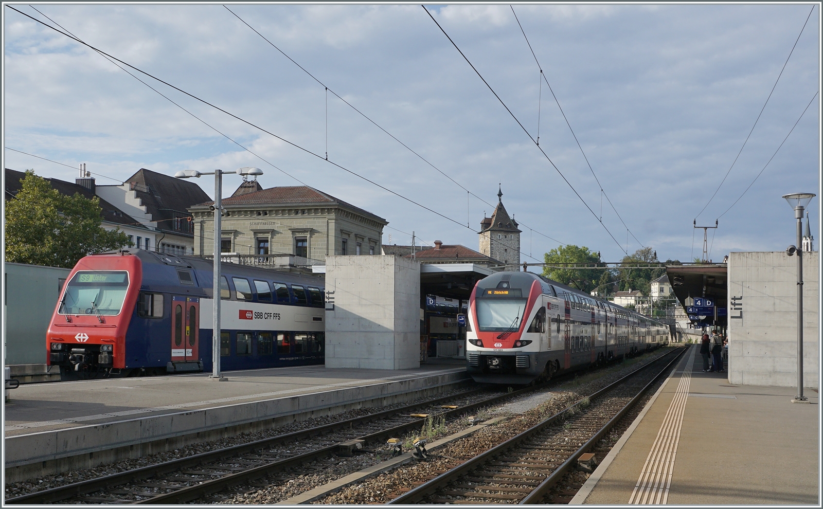 Trotzdem finde ich die Stimmung zeigenswert. Im Bahnhof von Vevey stehen der SBB RABe 511 037 nach Annemasse und ein SBB Domino, der auf der "Train de Vignes" Linie im Einsatz ist.