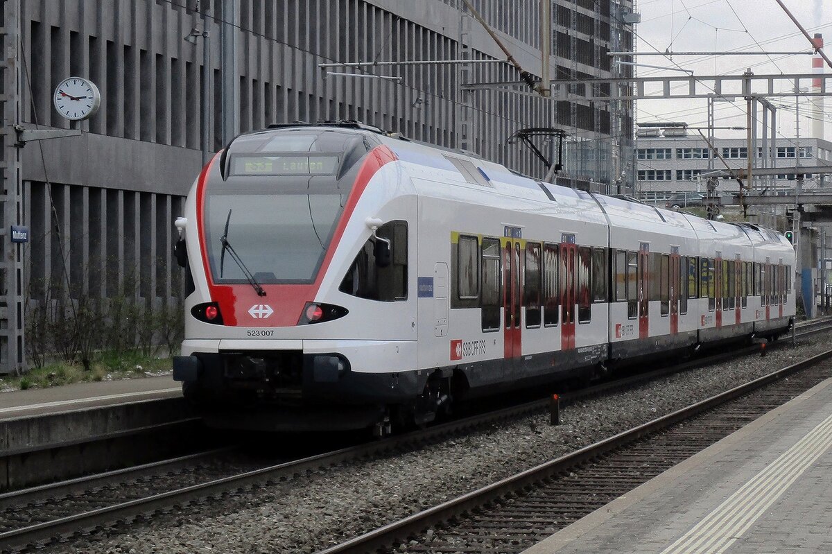 Am grauen 22 März 2017 treft SBB 523 007 in Muttenz ein.