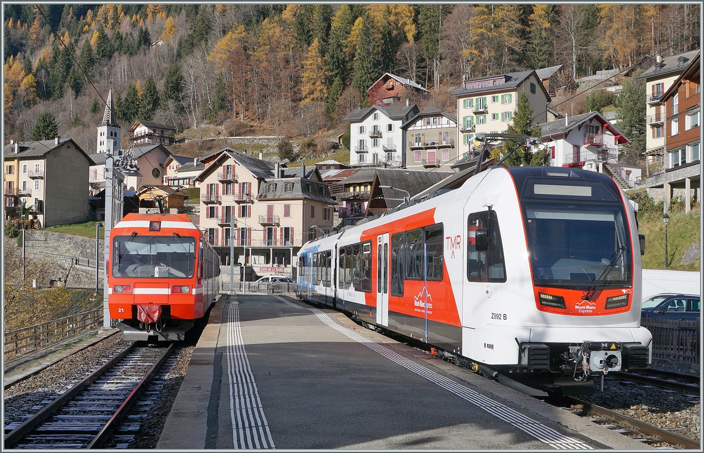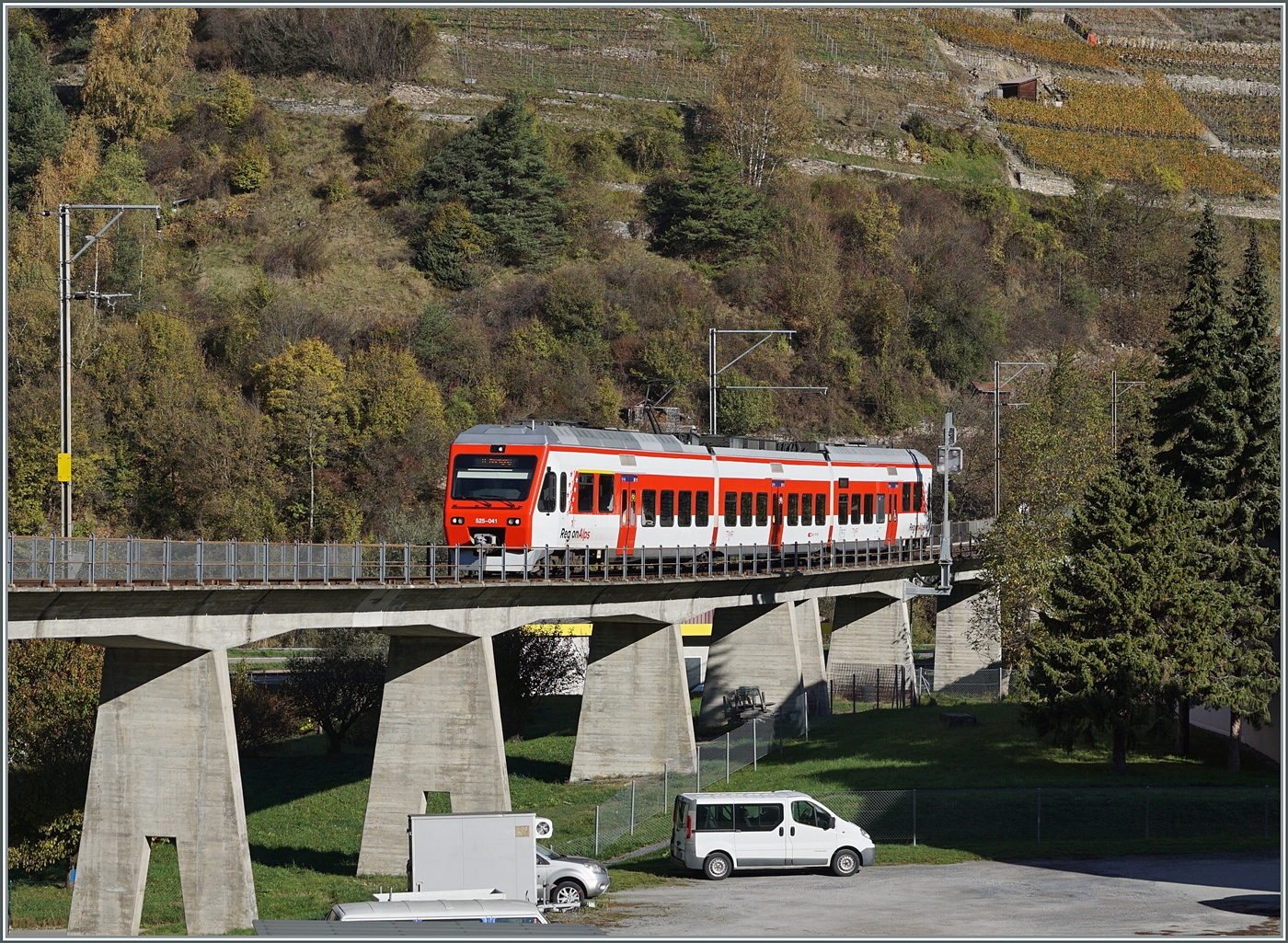 Der TMR Region Alps RABe 525 040 "NINA" auf dem Weg von Martigny nach Le Châble erreicht in Kürze sein Ziel.