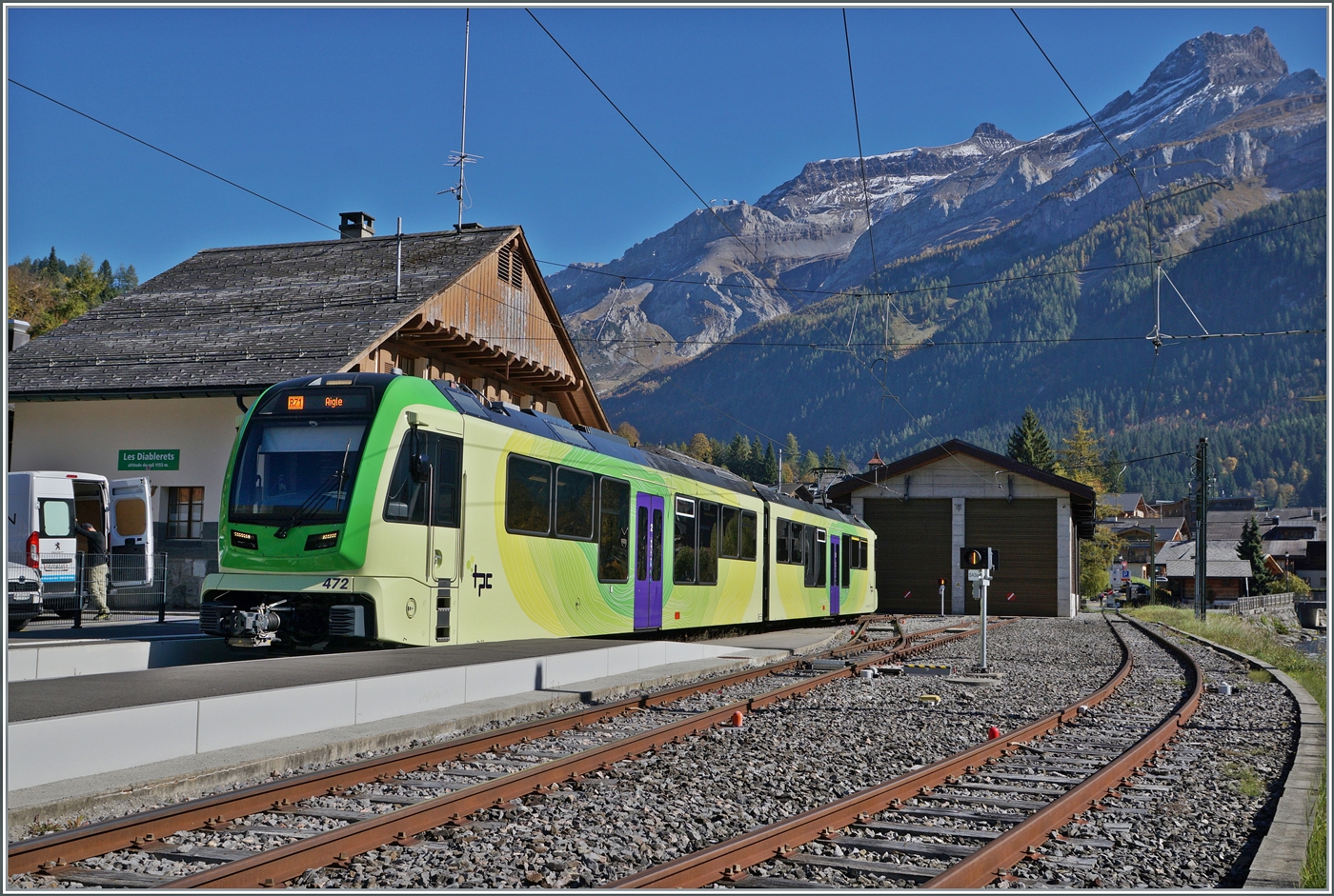 Die SBB Re 6/6 11666 (620 066-1) "Stein am Rhein" fährt ohne Halt durch den Bahnhof von Aigle während der TPC Beh 2/6 547 auf die Abfahrt nach Monthey wartet.