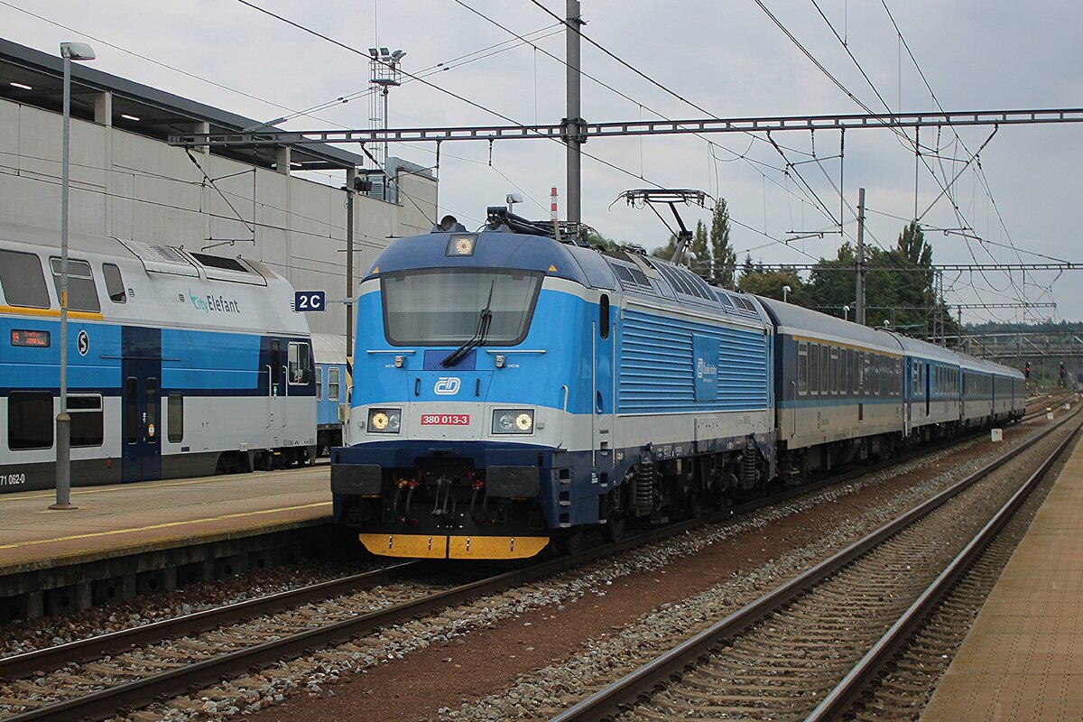 CD 380 008 durcheilt am 27 September 2025 Bystrice u Benesova mit ein IC nach Ceske Budejovice.